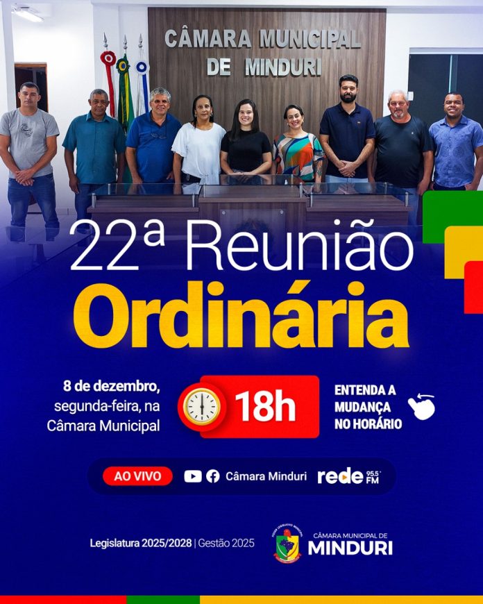 E considerando que, todos os vereadores concordaram com a alteração do horário da 22ª Reunião Ordinária de 2025, prevista para o dia 08/12/2025;