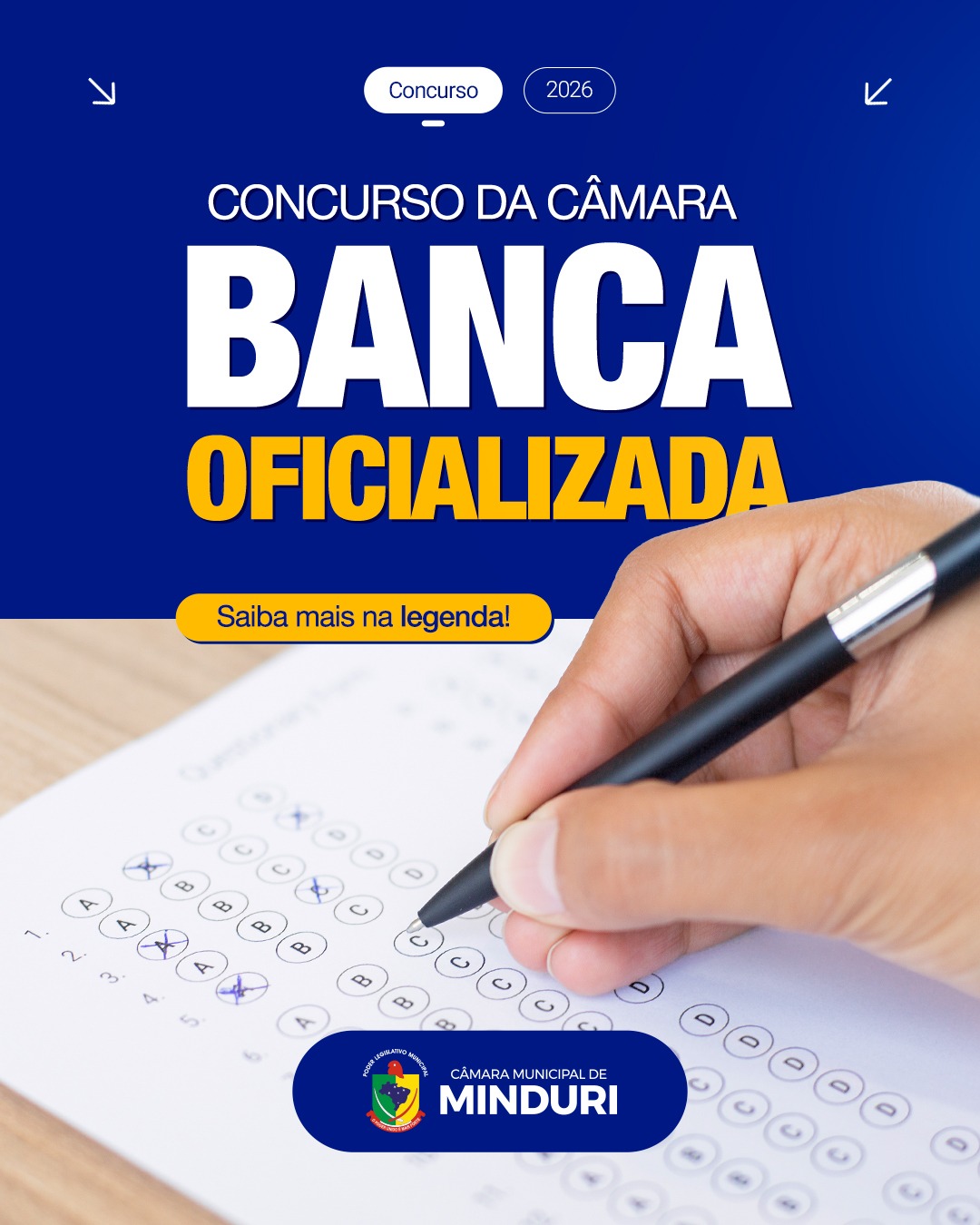 A Câmara Municipal de Minduri em 2025 definiu a banca organizadora do Concurso Público por meio da Dispensa Eletrônica nº 001/2025, referente ao Processo Licitatório nº 026/2025.